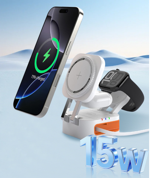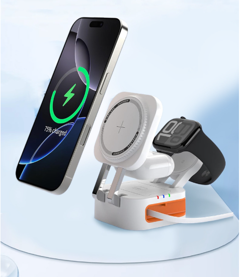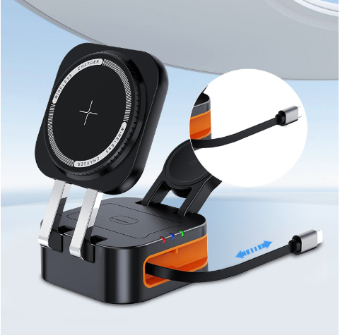 / W09 – 3 in 1 Wireless charger built with Retractable Charging Cable