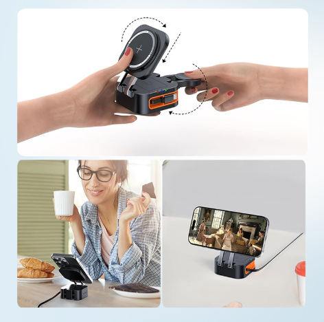 W09 – 3 in 1 Wireless charger built with Retractable Charging Cable