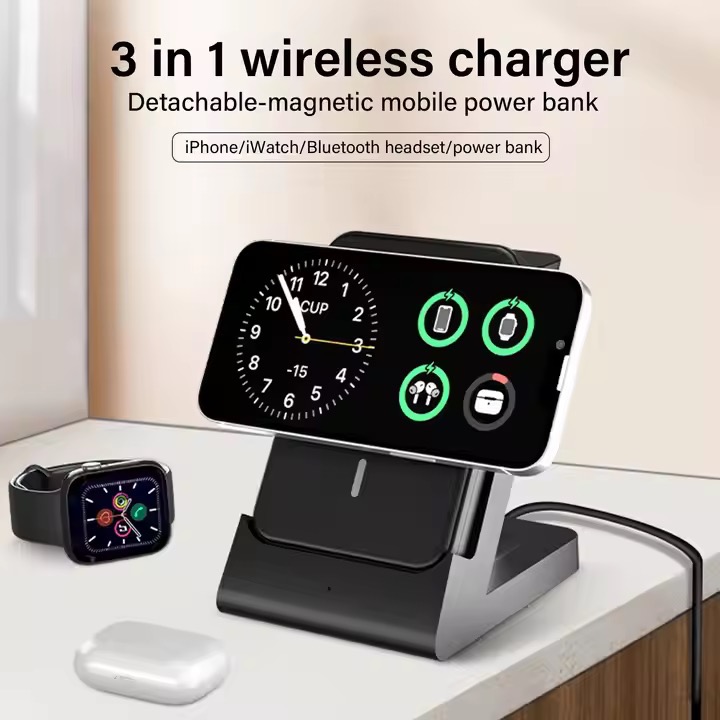 / W02 – 4 in 1 Wireless Charger Station + Power Bank Stand for iphone/iwatch/Airpod