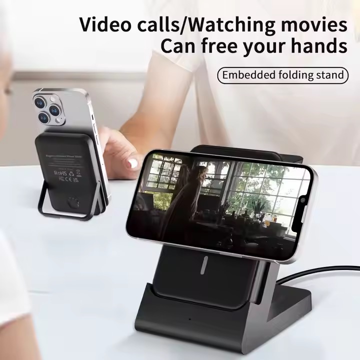 Magsafe Wireless Charging PowerBank Phone Stand+ 1x lightning cable +1x typeC cable