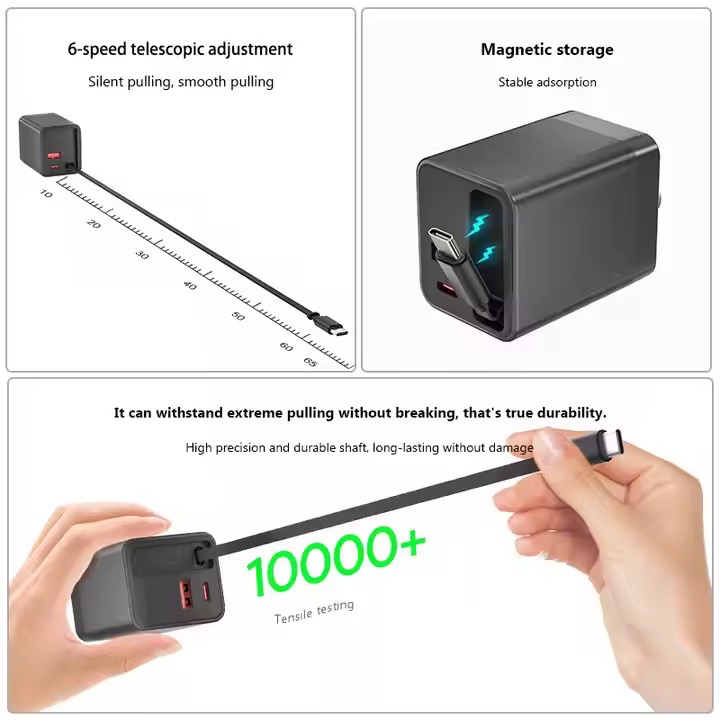C07 – 4 in 1 Retractable Car Charger With USB C Lighting Cable +Starlight in Auto Roof