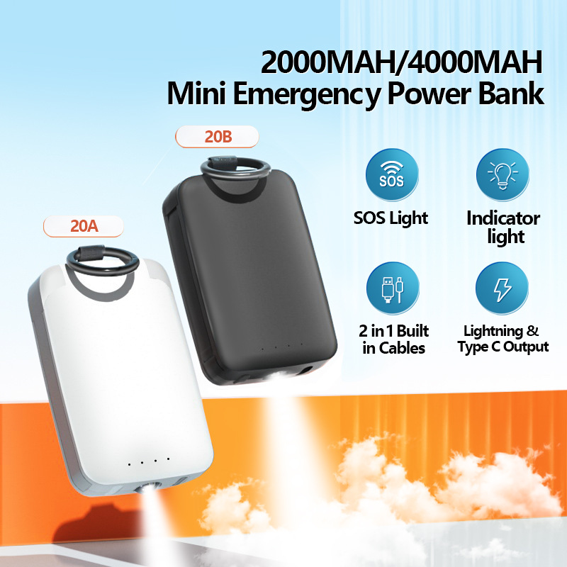 / Keychain Mini power bank With 2x Cables built-in for outdoor