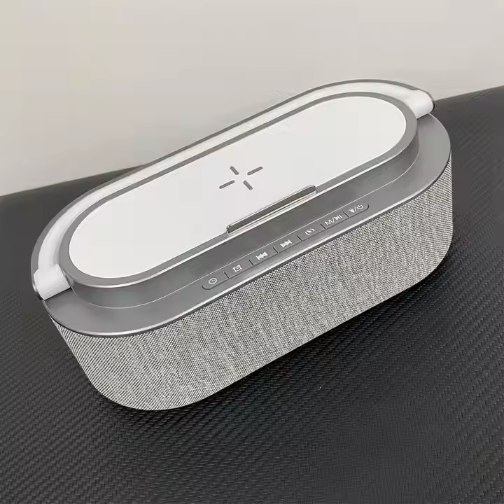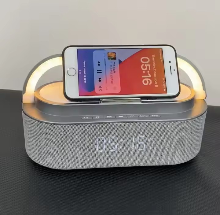 Multifunction 3 in 1 Alarm Clock Wireless Charger +10W Dual Bass Speaker +RGB Night Desk Lamp