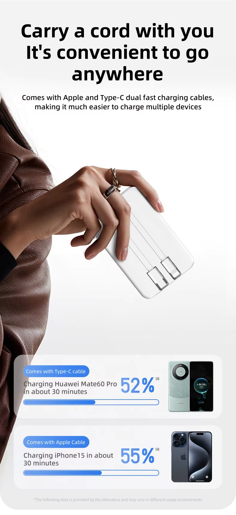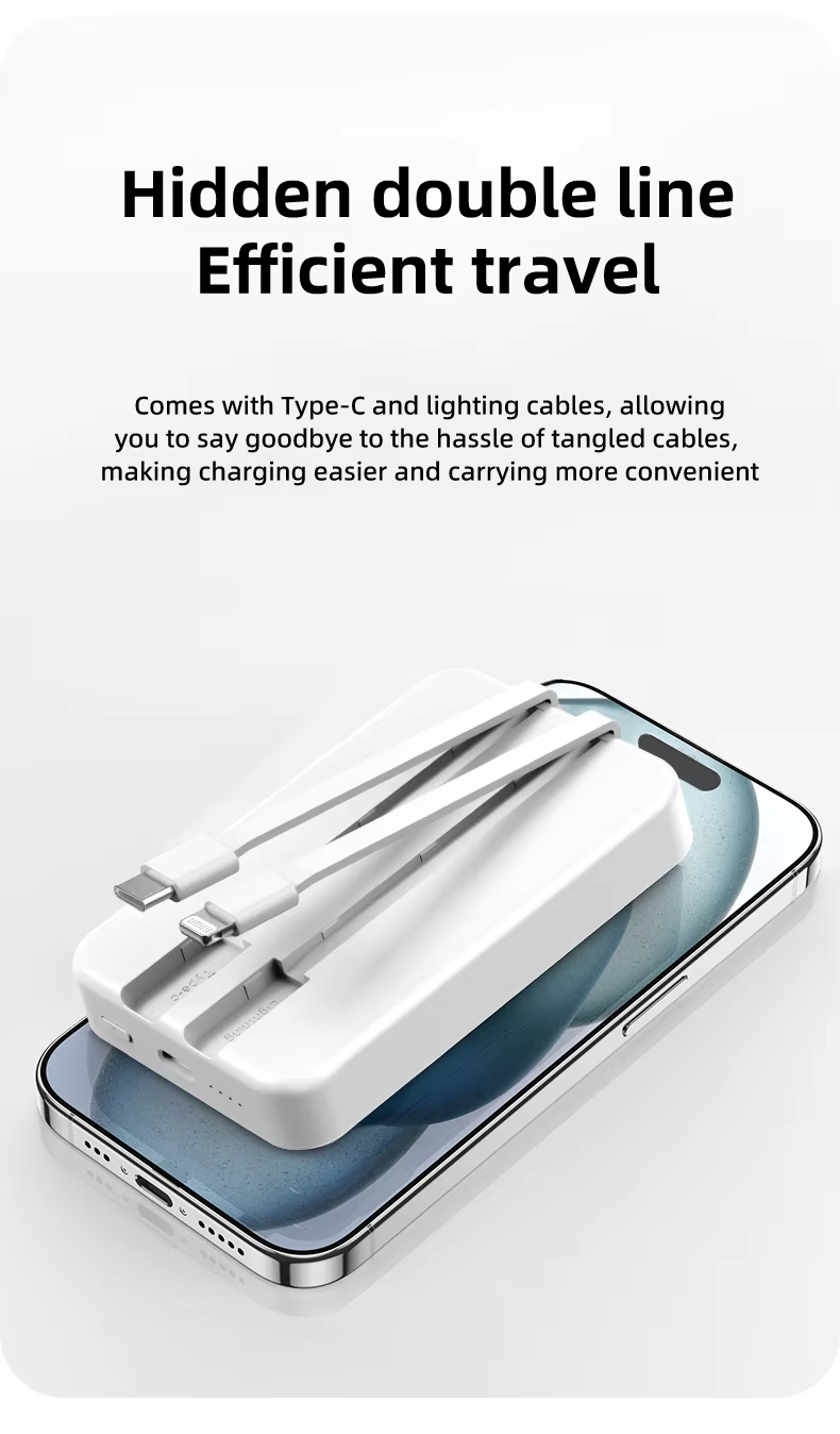 Portable Small capsule Power Bank 5000mAh Built-in double wire For outdoor Travel