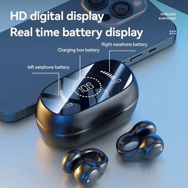 OWS Clip-On Electroplated Appearance Earbuds Power Display with AI HD Call